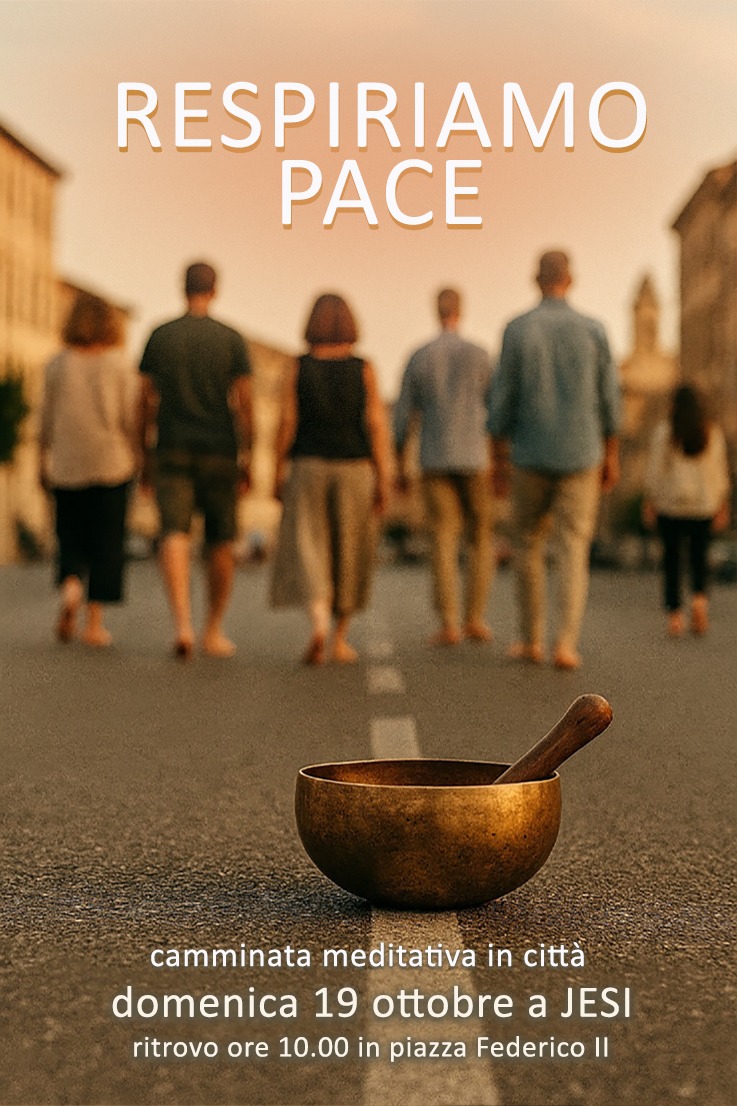 Domenica 19 ottobre a Jesi , accompagnati dall’attenzione al nostro respiro e dal suono della campana tibetana, ci facciamo uno con il senso di pace interiore, senza distrarci o chiacchierare, incarniamo la pace perché possa risuonare in ogni cuore.